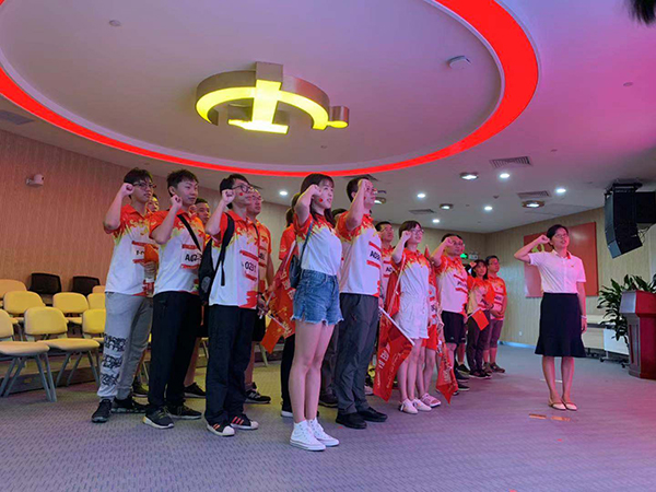 齊同朗讀宣誓詞;到達寶山區(qū)檔案館進行線上答題,全隊人員圍在一起思考答案,共同溝通討論;來到炮臺灣濕地公園,全員一起歌唱愛國歌曲四局并擺出“紅色娘子軍”的動作,并且發(fā)送朋友圈。