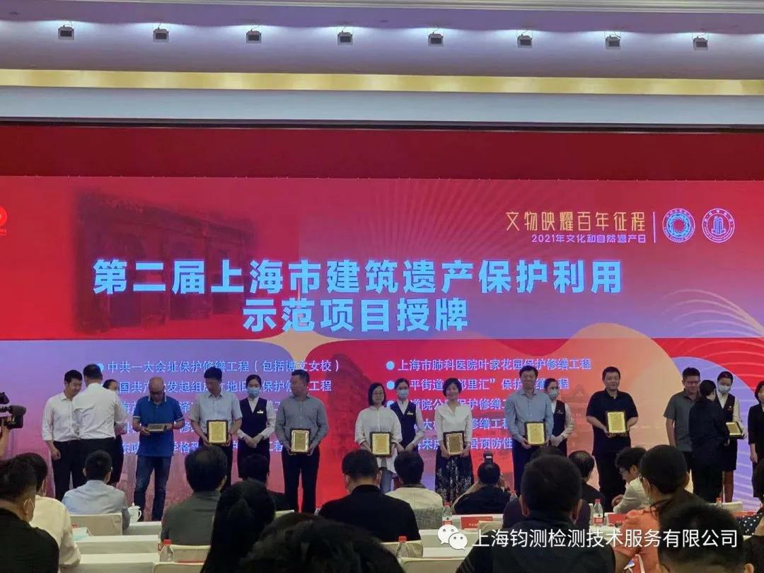 其中,由上海鈞測(cè)檢測(cè)技術(shù)服務(wù)有限公司參與檢測(cè)的上海市肺科醫(yī)院葉家花園保護(hù)修繕工程項(xiàng)目榮獲“上海市建筑遺產(chǎn)保護(hù)利用示范項(xiàng)目”。