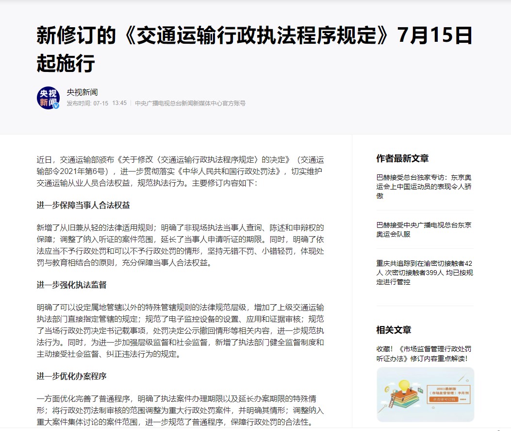 2021《交通運(yùn)輸行政執(zhí)法程序規(guī)定》修訂解讀